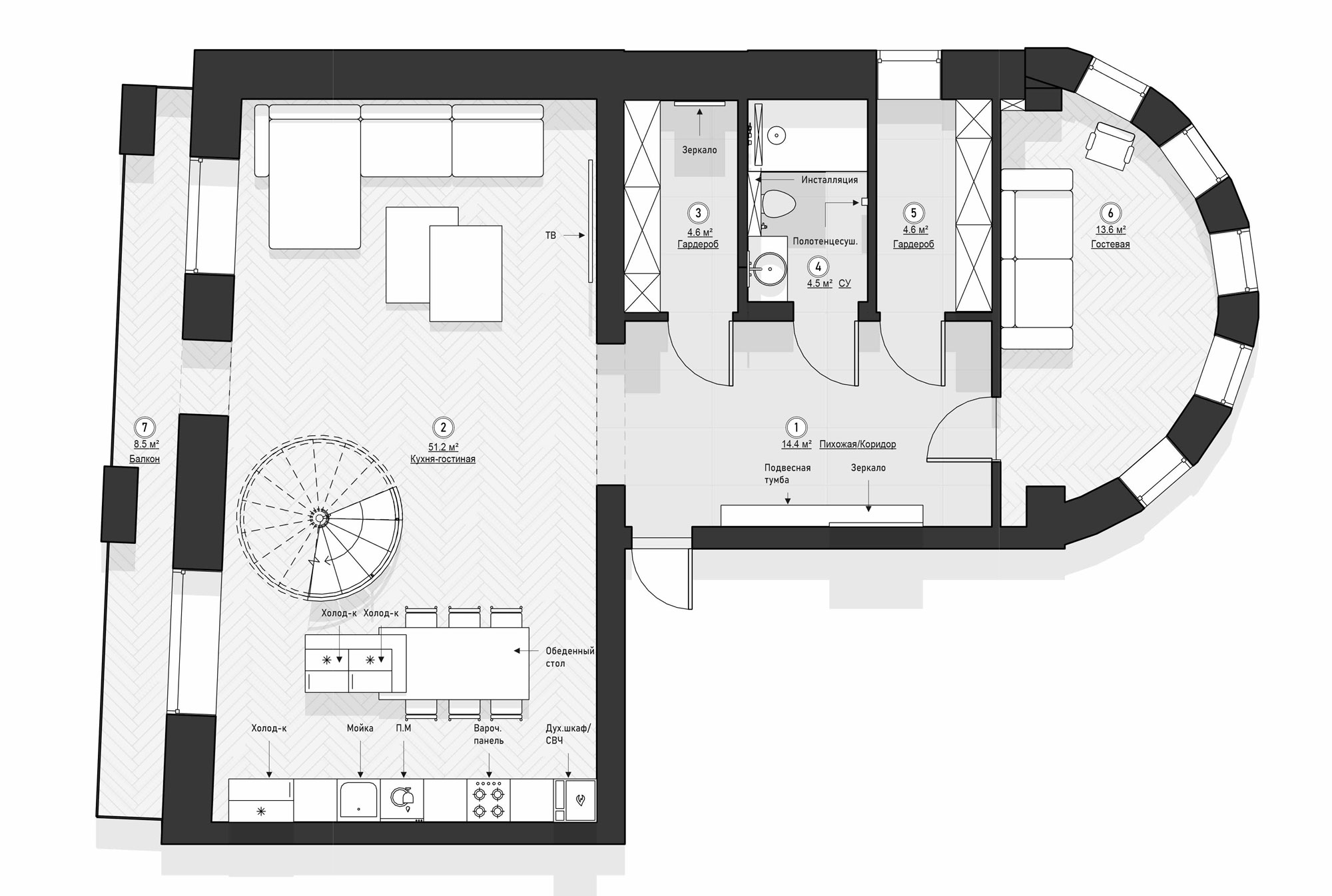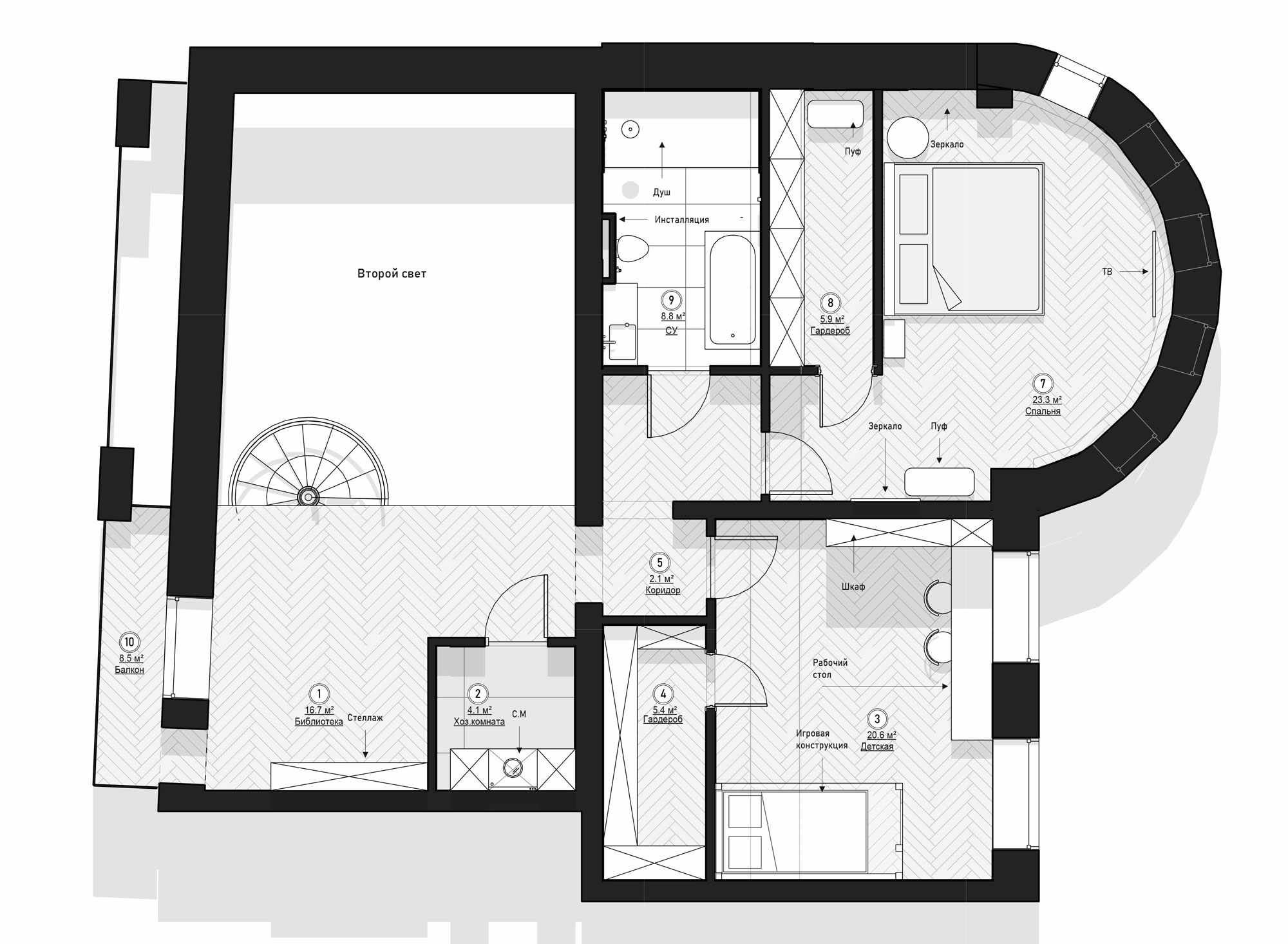 3. Двухуровневая квартира, 202 м2